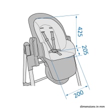 Apoio macio para recém-nascidos (0 a 6 meses), que depois se transforma numa confortável cadeira de refeição para todas as refeições até aos 3 anos de idade.